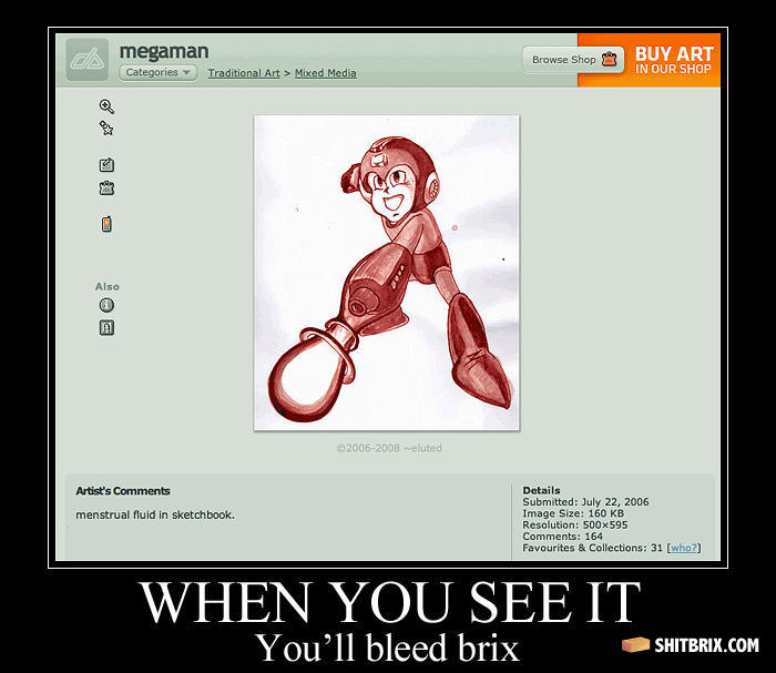 A última tá no comentário da foto (e talvez na própria foto), onde a criatura fala que tem manchas de "fluido menstrual" no desenho :D